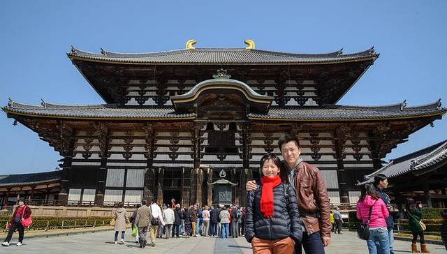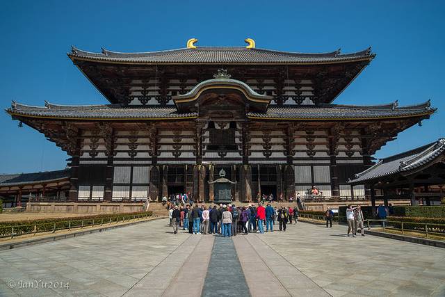 静静的来,悄悄的走,踢踏踢踏去往奈良的不可不看,也就是东大寺,日本最大的木结构建筑,也是世界最大哦。远看很是宏伟,近看有些斑驳,一千两百多年的历史不是盖的。进入大佛殿供奉着如来,这与天朝很像,只是周围没有四大天王和十八罗汉,略显空旷了点,这方面毕竟天朝才是源头所在,更为正宗啊。