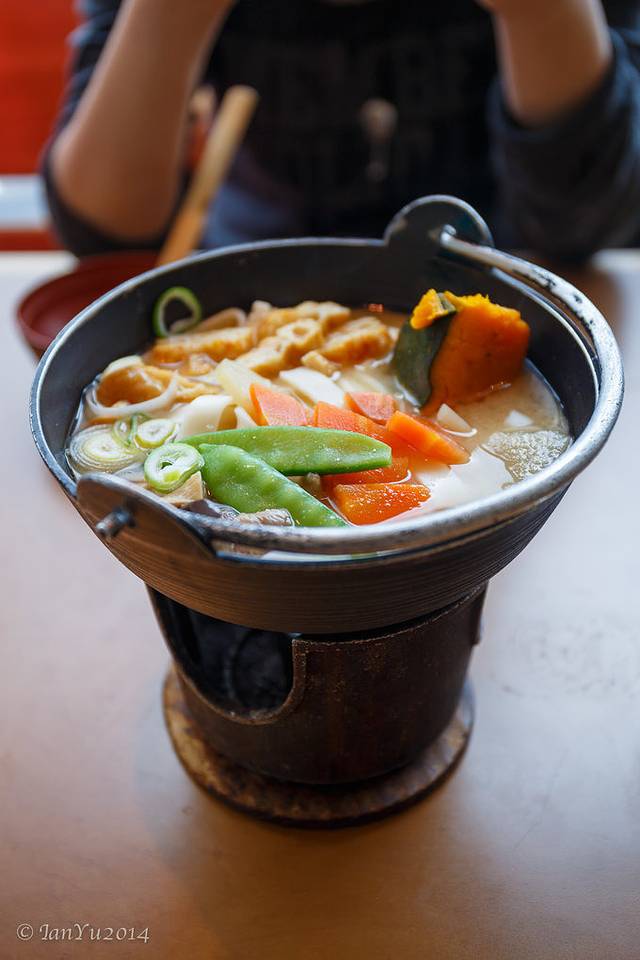 下山就方便多了,十分钟吧,大家都饿了,于是去到车站附近吃饭,当地的名物ほうとう锅,但吃下来不咋地,都是蔬菜,放点宽面,再煮吧煮吧,这也能算名物,要西,论吃,还是要到天朝啊。不过LG点的乌冬面依然水准到位,话说他们这个汤头怎么能弄的那么鲜呢,赞哟。而病号索性点了肉排的西式套餐,天天暴走不吃点肉不行啊,啊哈哈哈。结账就4000吧,人均1000,很便宜。