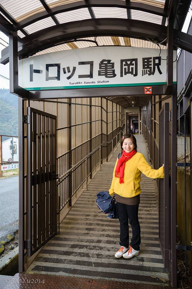 按攻略里最佳嵯峨野观光铁道的乘坐路线,是先坐JR到馬堀,再走到トロッコ亀岡站,乘回程到岚山。研究了下确实这样最合理,就去坐JR啦,可惜祗园换JR略烦,权衡了下,还是京阪线到东福寺换乘JR,然后从JR奈良线换乘JR山阴本线一直到馬堀站,整个换乘也要四五十分钟。到了馬堀下车,就发现很多同好都是往一个方向前进,哈哈,这下是游客大聚集了,国语满天飞,发现台湾人真的蛮喜欢来日本的。