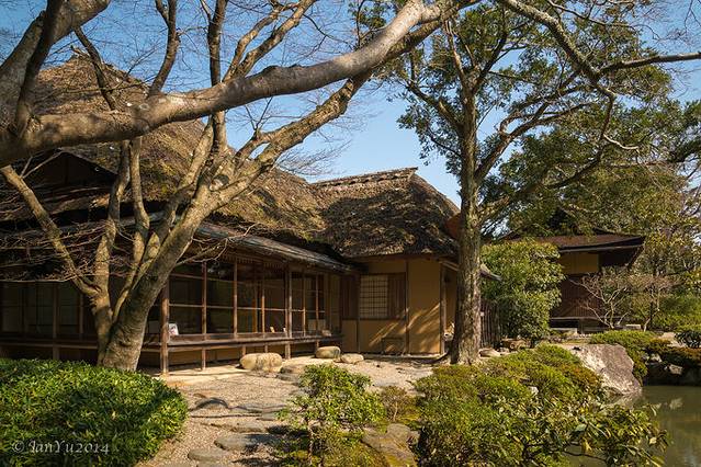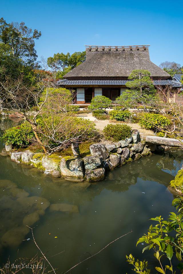 日本的庭院不同于我们江南的亭台楼阁、围池假山,它人工痕迹很重,但是却力求与自然融为一体,没有人工后期添加进去的物件,只有精心的修剪,每一草每一木都以最佳的形态示人。依水园在这方面更甚,草坪的形状无可挑剔,不经意的石头都摆放的恰到好处,池水中的石阶也精致异常。走到后院更是让人傻眼,简直就是一副画作,每一笔都是精心雕琢,我们常说大自然的鬼斧神工,这依水园是日本人的巧琢天工,乖乖隆地洞。