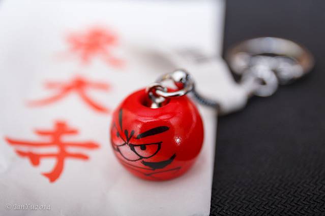 再往前是卖御守的地方,东大寺的特色是有不少造型好看,花色有趣的铃铛。嘀铃嘀铃,清脆又不闹腾,就想挑上一个,LG闲得蛋疼,还去问卖御守的老婆婆铃铛上的人物是什么,擦,人家说不了几句英文,就问会不会点日语,LG把我推上前,我硬着头皮装着一副恍然大悟的样子勉强交流了几句,尼玛。所以这个浓眉大眼的家伙可能也许或许大概是当地的一种妖怪吧“まもの”,至于这个铃铛是招妖怪还是去妖怪呢,我实在是わからない。