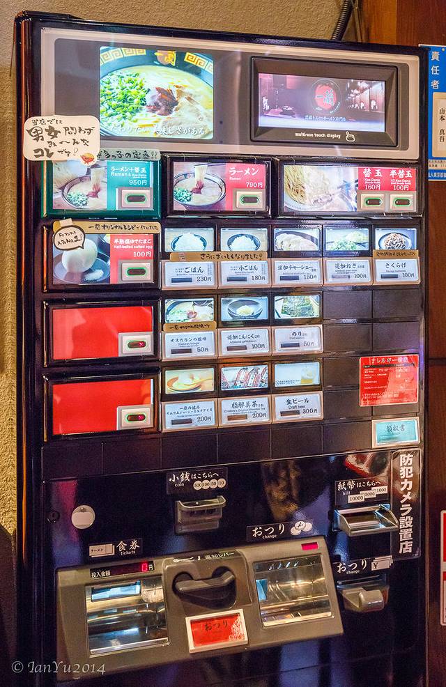 买单加退税加打包,一折腾又到了中午吃饭点,就近选了附近的一兰拉面。这么出名的拉面店怎么也要去一回吧。我是攻略做烂了,在机器上选面啦、隔断位啦、只闻其声不见其人的服务人员啦,但另外三个就大惊小怪了,纷纷称奇,LG对这个模式赞不绝口,觉得非常有创造力,呵呵。店面不大,布局却很合理,后面挂衣服放包的篮子一应俱全。坐到自己位置上,又添了份店家自做冰淇淋,按了铃,这个时候直接付现金就行。但我还是八了下,想当然以为替玉是个蛋,玉子不就是蛋吗?结果尼玛是再加份面的意思一刚。乃么我怎么吃的下,只好再按铃,把头凑到窗口想要好好解释一下这个问题,结果我刚sorry了一下,那边开口:“啥事?”我靠,同胞啊。小伙子麻利的帮我退了面,加好了温泉蛋,哇塞,有熟人就是好办事,感动撒!我在天朝祝福你在日本蒸蒸日上哈~好吧,略肉麻。哦,么有讲面,汤头还算鲜,有点微辣,肉也算嫩,但数量上略少,面本身么咬劲不错,总体来讲不坏,但还是不如一风堂,要我选,头也不回的去一风堂,恩,就是这样。