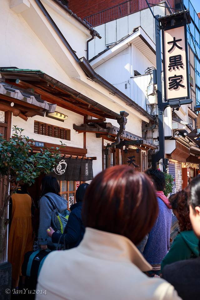 看看时间已经10点半多,提醒逛着的伙伴们可以去排队大黑家了,虽说是11点开门,但攻略上说11点已经大排长龙,我们10点50分左右到吧,大龙虽不至于,但是小龙已经有一条了,排得都拐了弯,乖乖,这个热门程度让人发指啊!!!我们赶紧跟上,结果11点开门前,这队伍已经极其壮观,想要一尝这个天妇罗名店的同志们,一定要记得早点来排队啊!