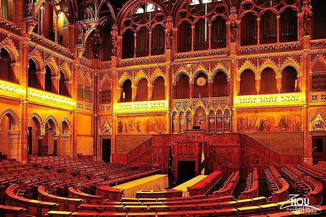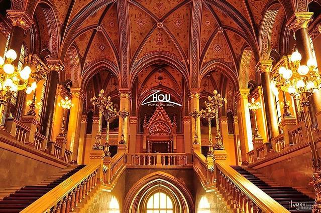 位于佩斯的匈牙利国会大厦属于新哥特式建筑。内部共有691间房,10个庭院,外部还有大大小小十多个庭院,号称是世界上最大的国会大厦。整幢建筑除了用了40万块砖和100万块珍贵石材以外,还奢侈的用了重达40公斤的黄金为建筑材料,而且当时已经全面采用了电灯,电梯,机械通风,冷暖空调等先进设备等,可想当时的奢华程度了。建筑由匈牙利名建筑师伊姆莱斯坦德尔设计,模仿了伦敦国会大厦的样式,1855年动土,1904年建成。现已成为匈牙利地标式建筑。