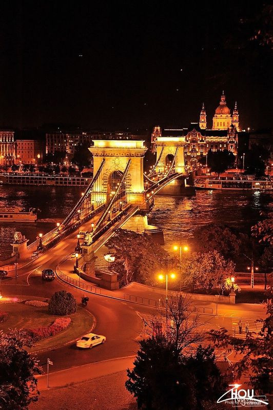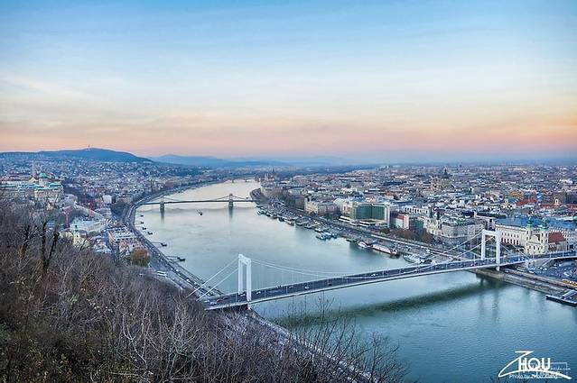 自由山顶眺伊丽莎白桥和远处的塞切尼链桥。