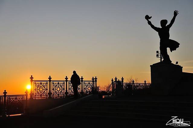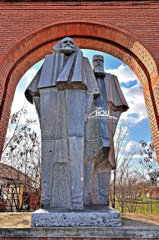 雕塑公园入口处的马恩雕像。