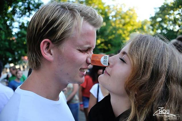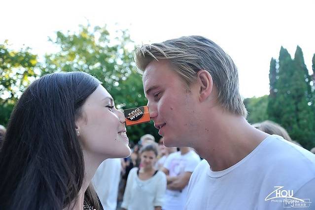 第一个破冰游戏是用鼻子来传递火柴盒,而且是男女搭配。对于高鼻梁的欧洲人来说,这似乎不算什么难事,但对于我们这些塌鼻子的亚洲人来说,挑战真的太大了!