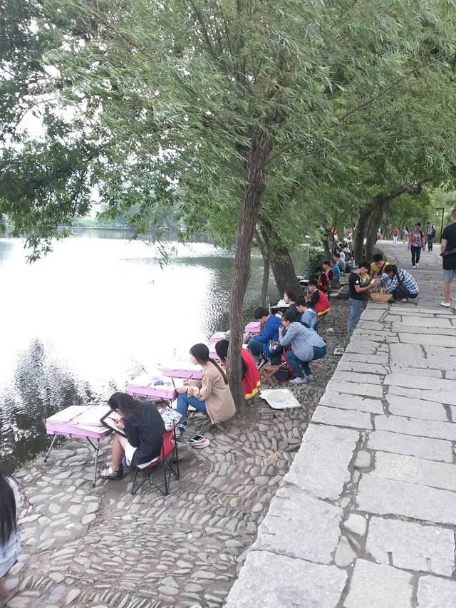 宏村门票是104,用了学生在52/人。到达宏村的时候是接近中午,正是游客最多的时候,到处都是写生的学生。那时的感觉是失望,好累,想睡觉。。。到达客栈洗漱完睡了个午觉,到了下午4,5点我们才甘愿起床,这时候游客已经不多了,因为来宏村游玩的人大部分都是宏村西递连着的一日游。兴庆自己选择的是住在了宏村,才看得到真正的水墨宏村。
