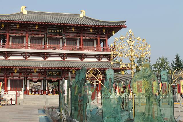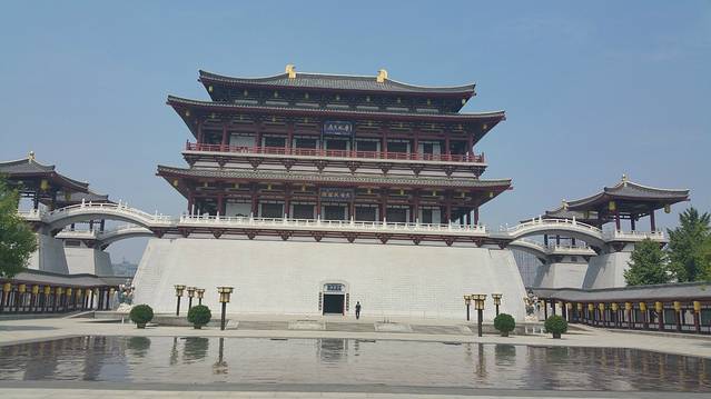 最后一天10点退房,然后下午5点飞机,于是选择了大唐芙蓉园,唐代建筑主题公园。神州专车从钟楼到大唐芙蓉园40元吧,打车大概20左右