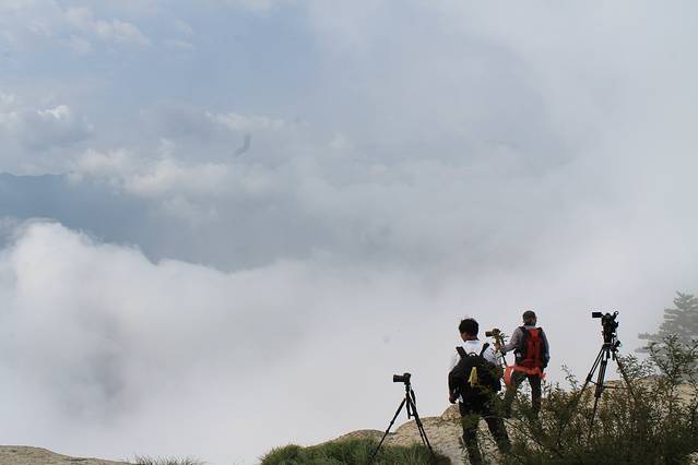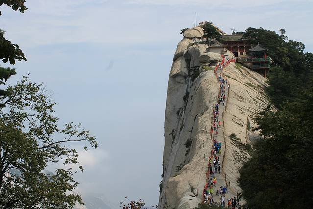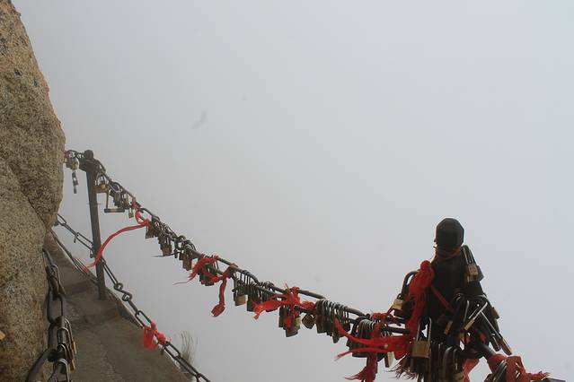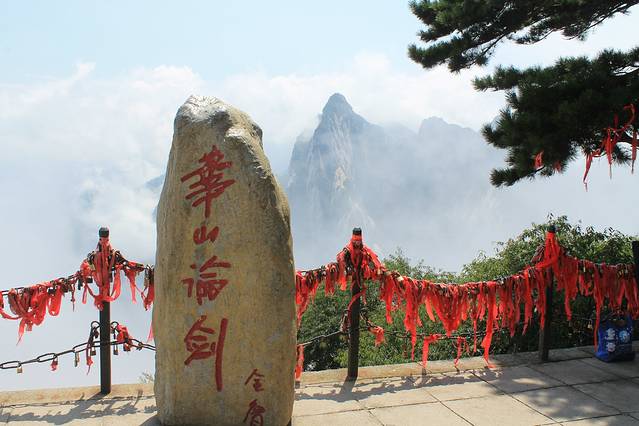 早起去北客站坐的高铁,二等座大概54元左右。建议提早买票,我是出发前把华山北-西安北的来回票都买了。去的时候买的7:50的,回来买的是18:00左右的。高铁到了华山北,穿过站前广场就是有免费大巴的位置,中途不必理会那些出租车。但是建议在那买副手套,最便宜的3元就行。有些爬梯还是比较陡的。免费大巴拉你去游客中心,在那里你可以买门票和去的车票。我建议从西峰上,北峰下,节约体力,玩的也比较好。保存好车票,上车要查的。 大概20分钟车程,到了华山西,沿台阶一直走可以看到卖门票的地方,这里买的是上去的门票。然后就是4000+长的索道,很恐怖,特别高,对我来说绝对是个挑战,再让我做一次我也害怕。 上去就是华山西峰,然后去的是南峰,也是五岳之巅。再走就是长空栈道,3块小木板构成的小道,下面雾气蒙蒙,挺恐怖,我走了一点点退缩了。之后可以去东峰,那里是华山论剑的地方。这几个山峰之间不超过30分钟,还是比较近的。但是从东峰去北峰的路上,一路下坡,楼梯也比较陡,走了将近2个小时,算是距离最远的一座山峰了。
