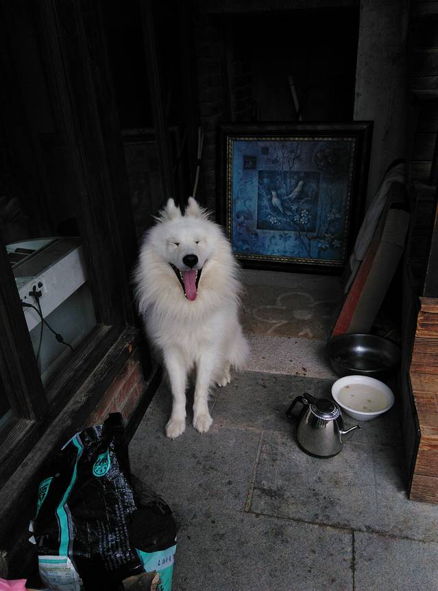 晚餐我们选择了古镇小学附近的呆呆妈妈菜,点了几个小菜,最满意的就是鸡豆凉粉和酸汤鱼。小店附近有间影楼有只很有趣的金毛,一看到路人拿着吃的东西就是会马上扑过去摇着尾巴问你要,好聪明的一只小狗哦。饭后,回客栈休息,至于什么酒吧、艳遇什么的我们就没什么兴趣了,客栈这么好的环境,还是早早睡觉好了。