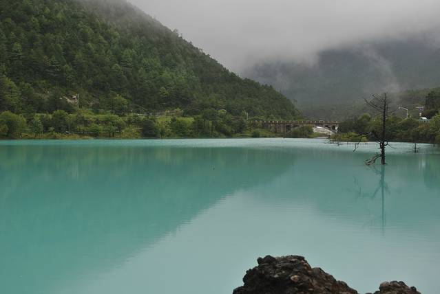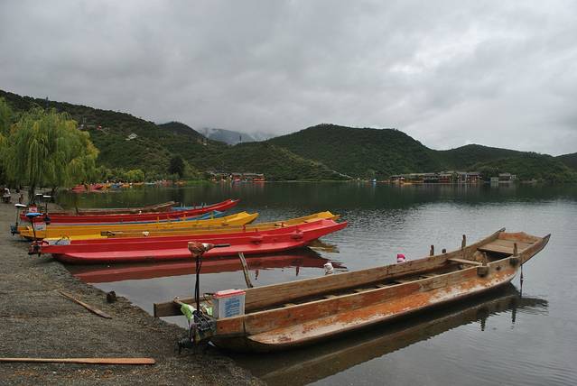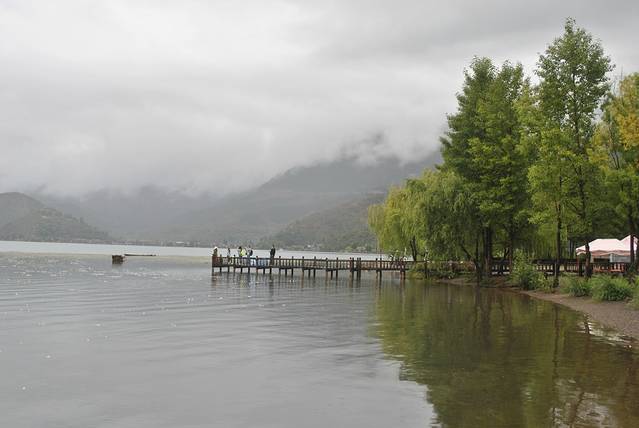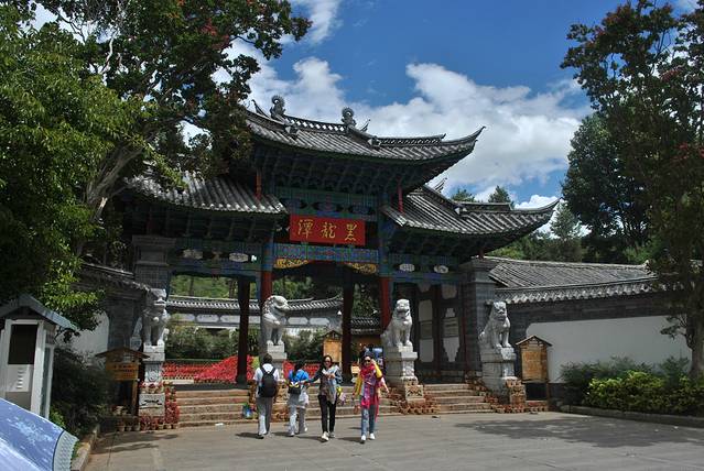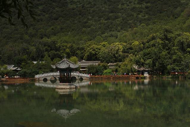 在木府附近随便吃个午饭后,我们就去了下一个目的地--黑龙潭公园。从木府出发,我们看到地图从忠义市场走出古城,然后坐公车很快就到了黑龙潭了。这个公园是免费的,只要出示古城维护费给工作人员盖个印就行了。这个公园很小,基本就是围着黑龙潭建起来的,风景算不上秀丽,但由于游客比较少,倒也显得比较清雅,在潭边坐一下看看手机,吹吹风挺有意思的。逛完这里后,我们就坐公车回束河了。由于第二天一早就要去泸沽湖了,所以我们回到束河后吃个晚饭就早早回客栈休息了。