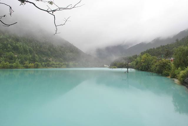 玉龙雪山的游玩我们是报了掌柜推荐的550块一个人的纯玩团,包回来接送、午餐、大衣、1瓶氧气、导游服务,虽然是贵了一点,但服务挺周全的,全程基本不需要再另外花钱了。早上8点在束河正门集中出发,在一个服务区领完大家和氧气瓶后就前往雪山了,路不远,一个小时不到。PS:进雪山要检查丽江古城维护费的,没有就要补票。雪山里面我们其实就玩了两个点一个是蓝月谷,一个是冰川公园(俗称大索道)。蓝月谷非常漂亮,有一条溪流从雪山流下来。上游至下游一共有3种颜色,是拍照的好地方。可惜今天一整天都是中雨至大雨,我拍出来的照片只能是一般般了。吃完饭后坐大索道上冰川公园,到达4000多米的平台,真是有点喘不过气来,好在有一瓶氧气,实在不行就吸两口。今天天公不作美,一到冰川公园就下起了大暴雨,山上一片白濛濛的什么都看不到,真是浪费了。我们在山上的咖啡店找了个位置坐了一小时就原路返回了。回到束河已经差不多6点。