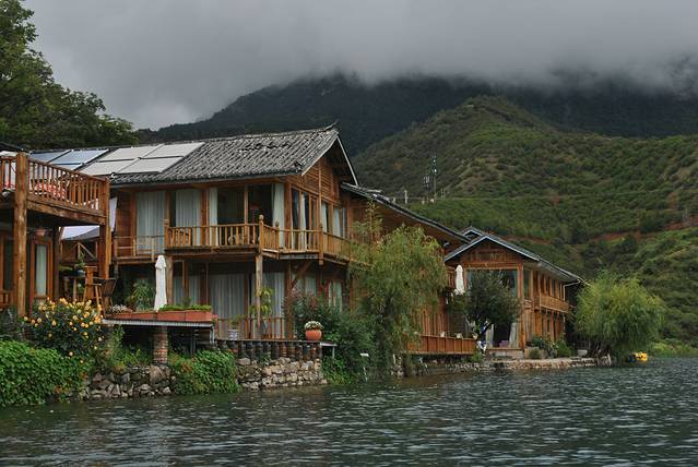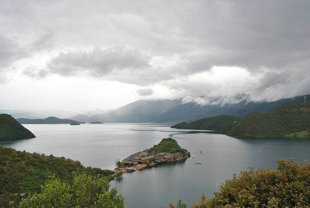 经过约40分钟的步行,和接近1个小时的等待(这包车师傅的时间观念比较差),我们终于坐上了前往泸沽湖的车。然后就是一路的颠簸,因为丽江前往泸沽湖的公路正在维修,所以有接近4分之1的路都是坑坑洼洼的,7、8个小时坐下来,真是全身都震散了。经过8小时的山路十弯,我们终于到泸沽湖的收费门岗了,门票每人100块。门岗往前一点就有一个观景台了,上到观景台后放眼一看,泸沽湖的全景尽收眼底,真是的美!虽然天气不太好,有小雨,但泸沽湖给我的感觉是宁静、安详和圣洁,就像静静地躺地母亲怀抱里的婴儿。拍好照片后,我们就马不停蹄地赶赴小落水,途中经过了大落水、里格、尼赛等村庄,有观景台的地方师傅都停下来让我们拍个够再走,这样又过了1个半小时才终于到达小落水逦水庄。小落水不同于大落水和里格,这边湖岸相对较短,开发得晚,各种配套设施不太完备,所以游客很少,对于喜欢安静我们来说简直是天堂。逦水庄应该就是小落水最大最靠里的一家客栈了,每一间房间的是湖景房!我们选择的是二楼的大床间,房间还算不错,有一个面向泸沽湖阳台,坐在阳台的椅子上对着湖景发呆是我们夫妻最喜欢做的事。由于入住客栈都已经6点多了,所以我们就在客栈的餐厅吃晚饭,客栈的饭菜水平真是出乎意料的好,特别是红烧排骨,十分赞!晚上就没什么其它活动了,什么篝火晚会的我们都没兴趣。入黑后小落水真是超安静的,环境超舒服,气温也直线下降了,同志们记得要带一件厚一点的衣服哦。