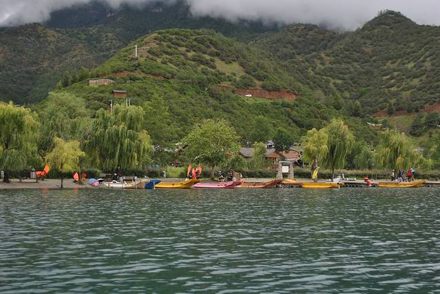 随着师傅的带路,我们从小落水、达祖、情人湾、走婚桥、草海线、大落水、里格,依次环湖玩了一圈,还在里格10块一人坐船游了湖,途中的美景多不胜收,心中的感觉是这一路的颠簸过来真是值了。最后,在师傅的推荐下,我们的晚餐在里格半岛师傅自己开的“卓玛火煻”解决了。这边一路都是类似的火煻店,也就是我们的烧烤店,烤乳猪和猪膘肉是最具特色,最好吃的,一边呼吸着清新的空气,一边赏着美丽的湖景,一边吃饭,真是别提有多么的享受了。喜欢夜生活的朋友可以选择住里格这边,酒吧、宵夜的店比较集中。饭后,我们就回逦水庄休息了,明天又是8、9个小时的山路阿。