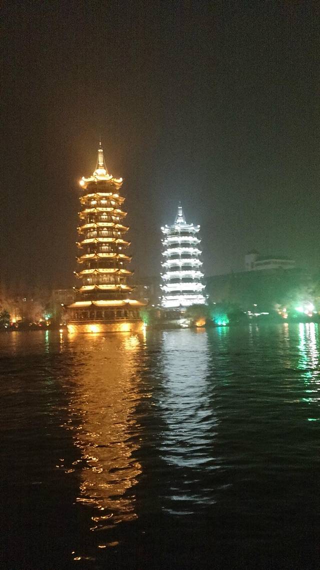 十字街的尽头是两江四湖景区,饭后在湖边走走是个不错的选择,日月双塔的夜景很美
