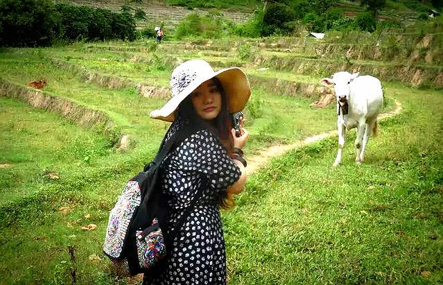 瀑布附近就是少数民族的寨子,只有一些老人还在手工去做织布