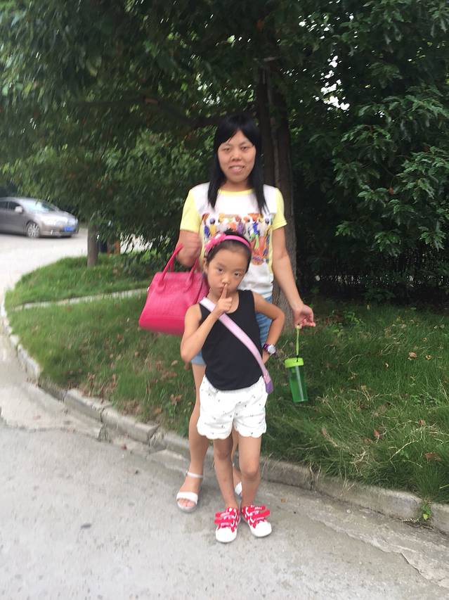 刚下车,老婆和女儿合影