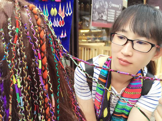 傍晚的时候,我们离开了洱海,告别客栈老板,去往大理古城,洱海离古城很近,20分钟就到了,古城不像想象中的繁华,反而有一种古朴的感觉,不知道是不是我的错觉,相比去过的乌镇和凤凰古城,大理古城就像一个北方的姑娘,大方而豪爽,在苍山的日照下,显得格外清晰明亮.我们在古城里先找了家住宿,就出去觅食了。我们在古城里找了家叫再回首的小店铺,环境很一般,不过鸡丝凉粉挺好吃的,又便宜,才8元一份,我还吃不完。吃完我们就沿着古城人民路溜达,选丝巾,编头发,买帽子,喝椰汁,不紧不慢,悠哉游哉的晃着,一会儿抬头看苍山,一会儿低头看酒吧,大理古城人不多,还是很适合闲逛。等到逛累了,我们就钻进一家咖啡店,点了抹茶慕斯和玫瑰花茶,看着外面的行人来来往往,不赶时间,不想事情的浪费着时光。大理的天黑的很晚,我们坐到8点多,天才开始变灰,我们才走出门,就下起了倾盆大雨,难怪人家说云南十八怪,天气第一大怪,雨总是下一会儿停一会儿,于是我们跑跑停停就到了客栈门口,买了鱿鱼串和烤猪蹄,慢慢的啃回去睡大觉啦,可能没有人像我们旅游,才9点多,就回客栈睡大觉,哈哈,旅游是放松心情,不是折腾自己,所以不爱跟团。