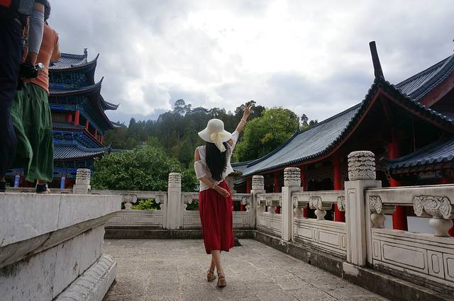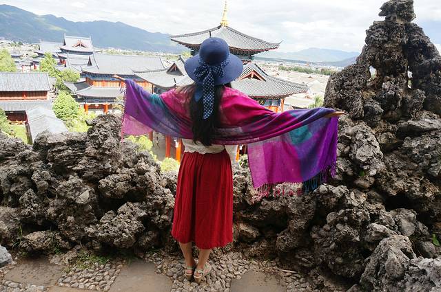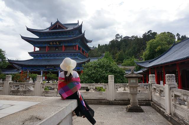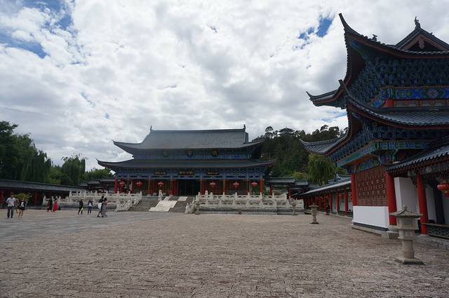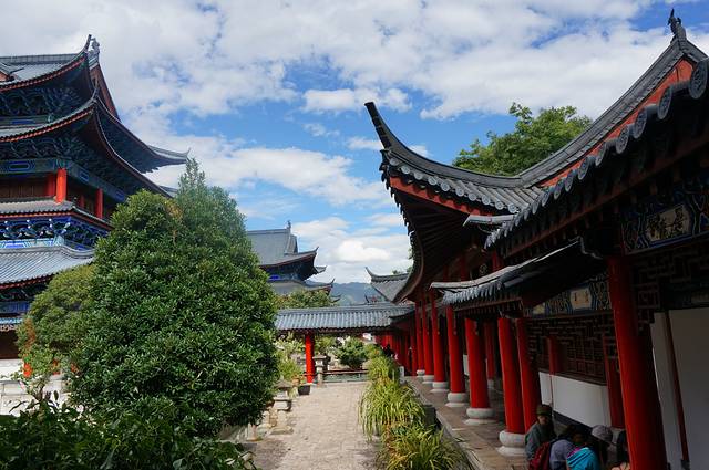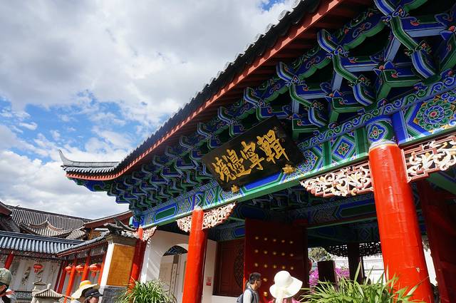 逛完古城,我们就坐大巴去了丽江,2个多小时的大巴,到了之后,客栈老板出来接我们,是个年轻的帅哥,帮着拉行李,马上跟着走啦,到了客栈,古色古香,别有一番风味,于是各种洗澡打扮,躺着休息几分钟,我们就去找午餐啦,好几天没吃米饭,所以特地找的一家有炒菜的,味道不错,菜名更好听一个青菜就叫风花雪月,哈哈,吃的我们自我感觉好小资。茶足饭饱后,我们就去逛木府了,丽江的王府,买票用学生证,半价,哈哈哈,木府里面有免费导游,在门口等就好了,导游讲的挺好,把木府的历史,人物故事及建筑特色,都介绍的很完整,要是历史课都这么上就好了,肯定记得很牢固。之前看过木府风云,就对阿勒邱有着很好的印象,导游说阿勒邱在当地是非常出名的夫人,木增也是一位难得的有文有武的土司,所以当地人比喻女人智慧勤劳就会说像阿勒邱一样。不过木府里的床都好短,不知道云南人是不是比较矮,猜测而已。丽江的建筑都是房间小,公共空间大,难怪我们看所有的客栈都三房间好小。丽江女人据说以黑胖为美。叫美女要叫胖金妹。哈哈。