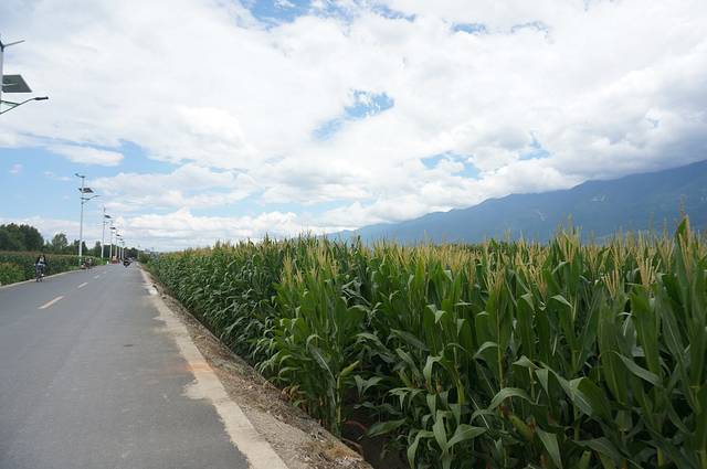 骑着车,洱海在右边,苍山在后面,左边是大片的玉米地,风微微的吹着,那种心情,真的是很轻松,很自由。洱海真的是一位风情万种的少女,每一个角落都会让人兴奋,我们开一段,停下来,看一段,拍拍照片,感叹世界有如此美景,以至于都忘记了戴帽子穿防嗮衣,后面回去之后才知道完全晒伤了。