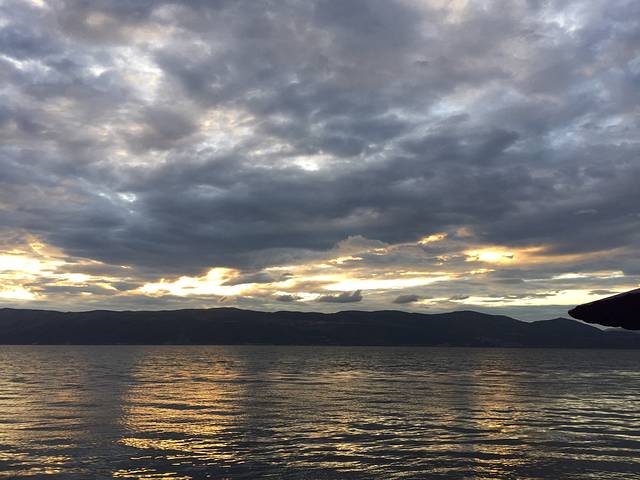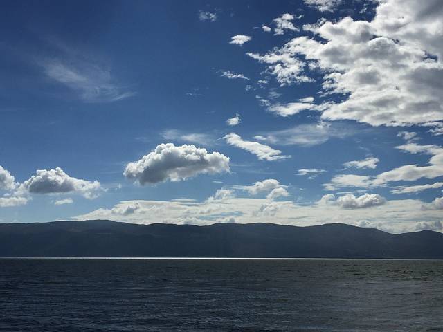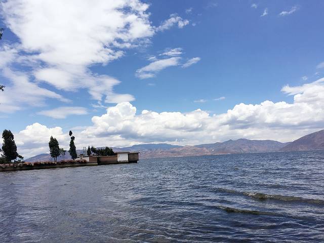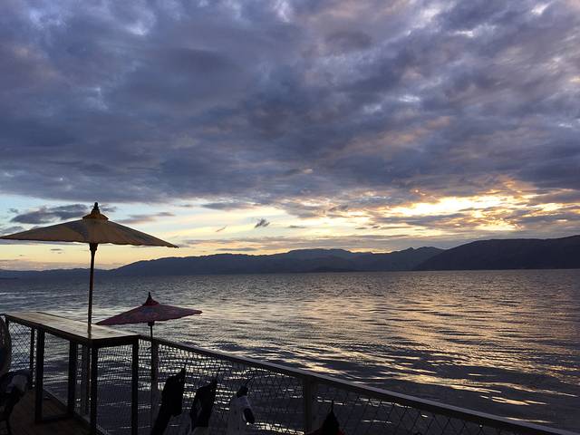 日出过后,因为才6点多,我又回去睡了个回笼觉,等我睡饱起床,霞光彻底穿透云层,在海平面上形成一条直线的时候,突然感到好兴奋,多么纯净的蓝与白,洱海的美,在我心里深深的种下了蓝色的种子。