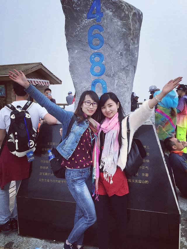 云南的夜,真短,9点才天黑,6点天就很亮了。我们起床迅速打包行李,奔向雪山的大巴,路上的早餐豆浆油条包子,太难吃了,还打包了很多,准备上雪山充饥,难吃的一口都吃不下。还好路上的导游非常幽默,听她说话太享受了。一路给我们讲了好多冷笑话。途中我们去领了羽绒服和氧气瓶,大红的衣服,和一瓶像杀虫剂一样大的氧气瓶,开始兴奋了,想象着在海拔4680的高空会不会晕倒,会不会来个真心话大冒险。导游说缺氧的时候,人是控制不了嘴巴的,所以想要表白的就上雪山吧。