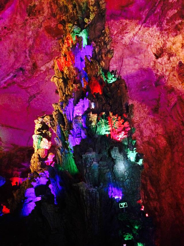 第一次在岩洞体验5种不同的交通方式:小火车 滑道 电梯 地下河游船 电瓶车 很新奇 上去的时候下雨了orz