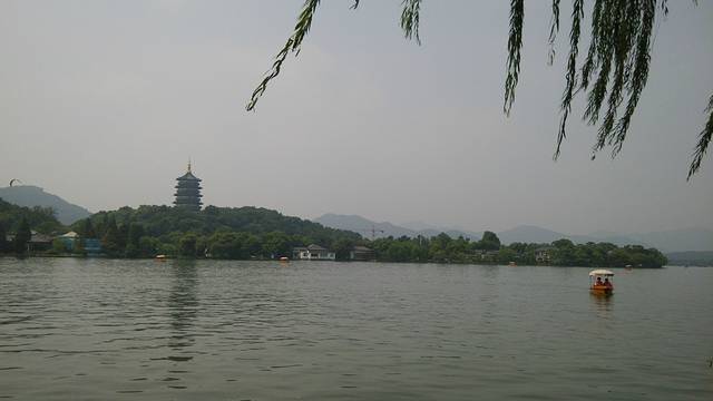 雷峰塔从柳浪闻莺往左走,10几分钟也就到了。40元门票,不高的感觉,所以我觉得不要和大家一起挤电梯啦,爬上去就好了。上面看到杭州被山包围的感觉,景色不错。玩一个半小时就够了,很快的,好像都不到。