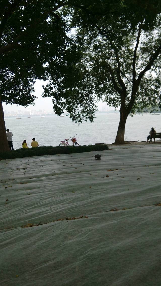 因为租车迟了,公共自行车没租到,我就一直走啊走,自我感觉好像苏堤都快走完了,也是蛮拼的,看到大家骑着自行车,内心其实是崩溃的。后来走不动,我就从一片茂密的树林那里出去了,感觉意外发现了一个不错的地方~