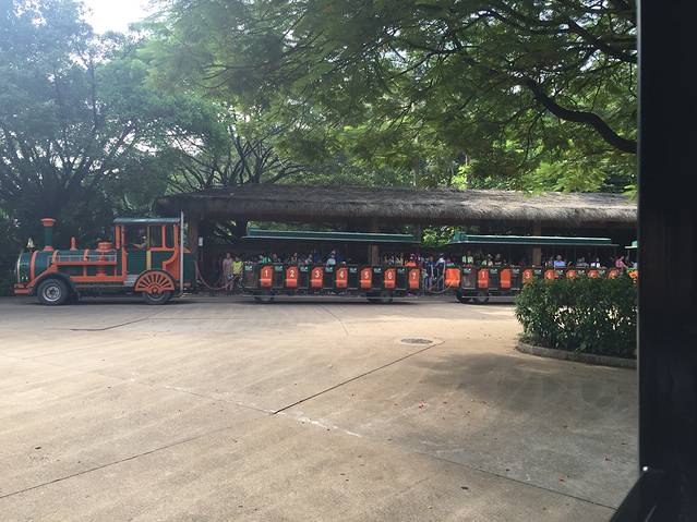 我们第二天早上预约了酒店的大巴,8点40从酒店出发。大概是8点55到达动物园北门。赶紧换票,排队。动物园9点开门,我们算第一波进入的游客。会开包检查是否带有食品,身上没有人检查。进入以后,一定要拿动物园地图!然后记好剧场表演时间。动物园有步行区和徒步区,考虑我们去的是节假日,游客多,我们立马冲向坐小火车的地方,由于才开园,基本没有排队,就登上小火车开始游览了。建议坐在小火车的右边,看到的动物更多些。小火车的游览大概30分钟。当我们走出小火车游览区,就看到了,排着长长的队