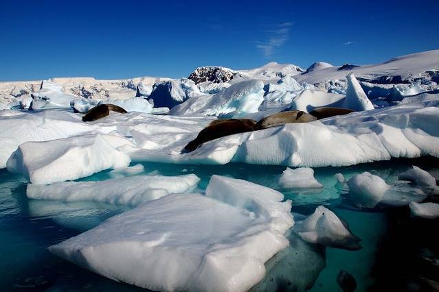 海豹 是鳍足类中分布最广的一类动物,从南极到北极,从海水到淡水湖泊,都有海豹的足迹。南极海豹数量为最多,其次是北冰洋、北大西洋、北太平洋等地。
