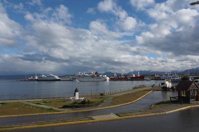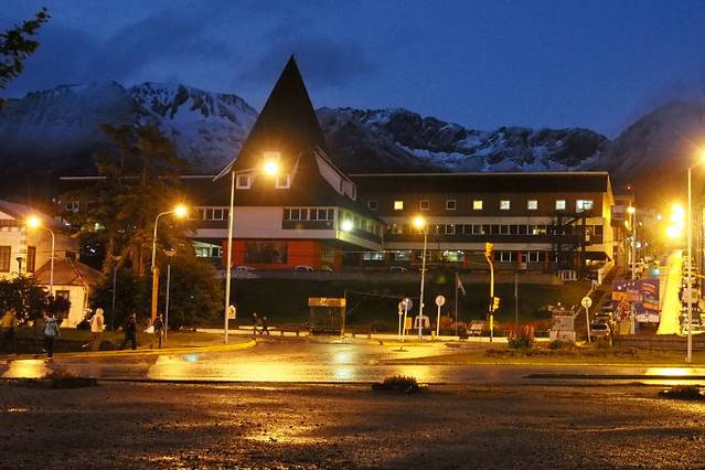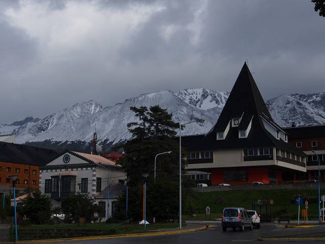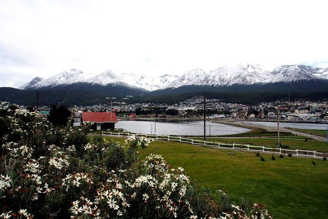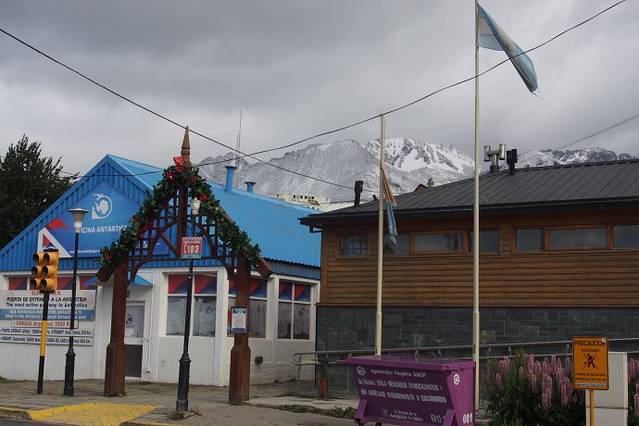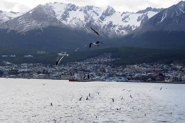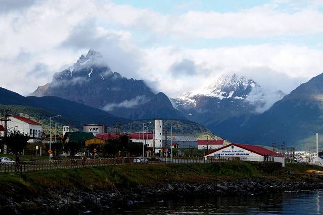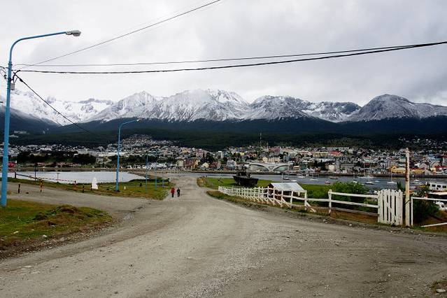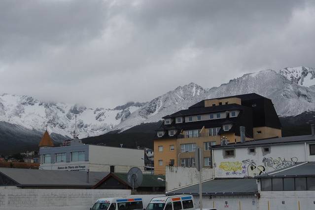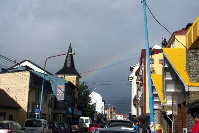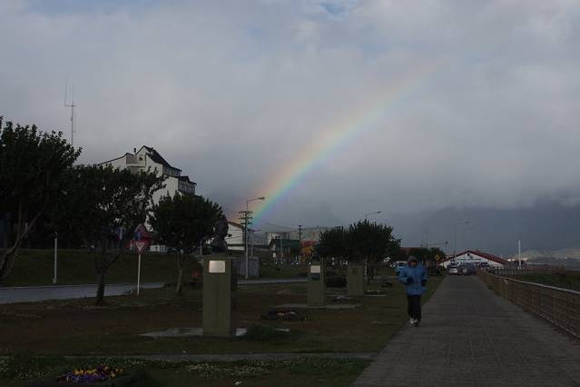 乌斯怀亚是世界最南端的美丽小城。它位于火地岛的南部海岸,北靠安第斯山脉,面对连接两大洋的比格尔海峡。它是世界上最靠南的城市。在当地土著部落亚马纳语中,乌斯怀亚的含义是“向西深入的海湾”、“美丽的海湾”之意,比格尔水道在这里形成一个大海湾。乌斯怀亚距本国首都布宜诺斯艾利斯远达3200公里,距南极洲却只有800公里。由乌斯怀亚起航,越过德雷克海峡,两天便可到达。因此前往南极洲探险和考察,乌斯怀亚是一个理想的起航和补给基地。堪称世界上最南的居民点。乌斯怀亚依山傍水,城市顺比格尔水道沿岸而建,岸边是宽阔的玛依普大道,我们入住的宾馆就坐落在大道一侧。放下行李,我们迫不及待的去海边拍摄。色彩丰富,造型各异的建筑坐落在波光粼粼的大海和青山白雪之间,构成一幅绝美的图画。小雨过后一道彩虹更使画面完美无缺。