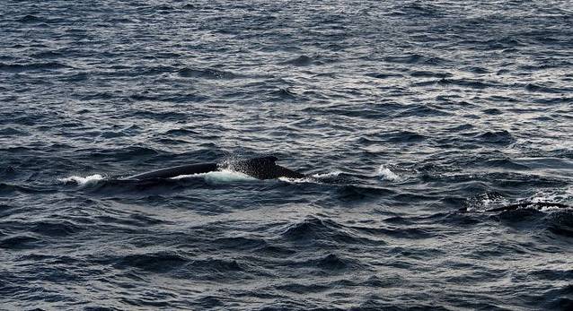 这是坐小艇巡游时近距离拍到的鲸鱼尾巴。我们追着拍摄很久它才甩一次尾巴。