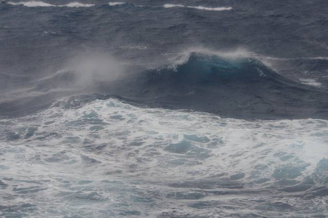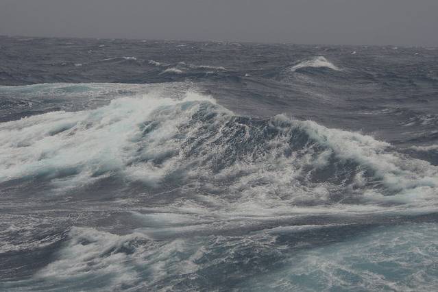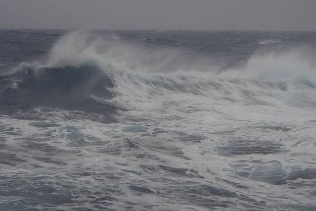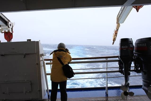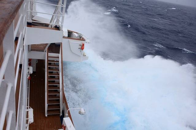从南极半岛返回时,我们遇到了中级风暴。飓风掀起的巨浪令船体上下颠簸,左右摇摆。最厉害的颠簸发生在午餐时,餐桌上的餐具全部滑落的地上,正在用餐的几位游客瞬间翻倒在地。只可惜摄像机和照相机不在身边,没能捕捉到那一瞬间。