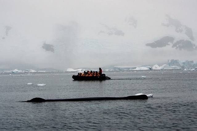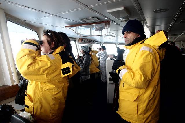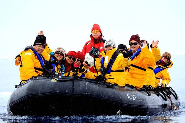 在海钻石号上的主要游览内容一个是登岛与企鹅亲密接触,另一项就是乘皮艇在海上巡游。十个游客乘一条小艇,驾驭小艇的都是游轮公司的精英。他们来自世界各地,许多都是各个领域的专家学者。