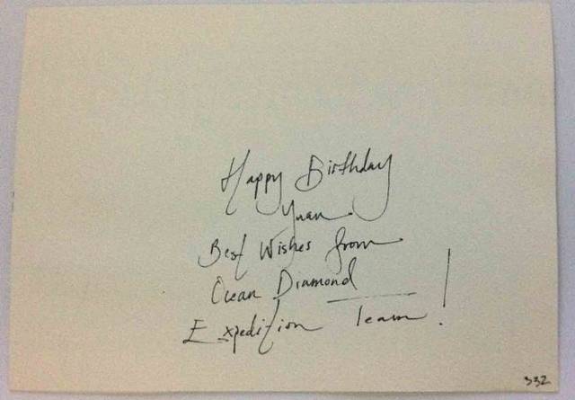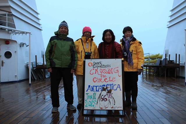 2015年1月11日凌晨我们的海钻石号驶入了南极圈。全体游客和船方的员工聚集在后甲板上欢呼庆祝、拍照留念。这一天恰逢我60周岁的生日,船方的管理团队是一个非常专业和亲民的集体。早上打开舱门,一张有船长签名的生日贺卡插在门上。晚餐时餐厅经理端着生日蛋糕率众服务员唱着生日歌来到我们的桌前,在这个特殊的地点与100多人以这种特殊的方式度过这个特殊的生日,将令我永生难忘。
