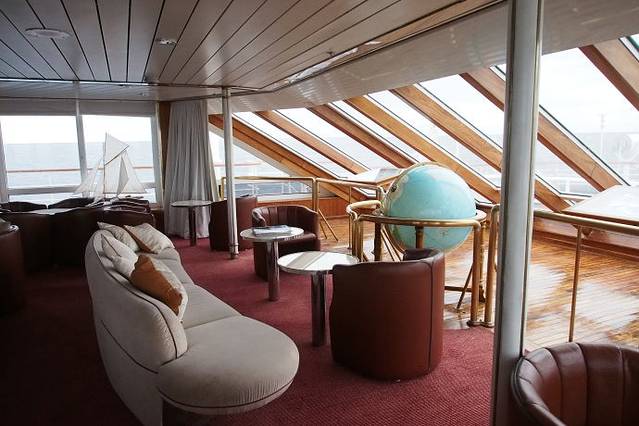 船头7层的小会议室,隔着玻璃能观看前方的景色。一些小型讲座就在这里举行。