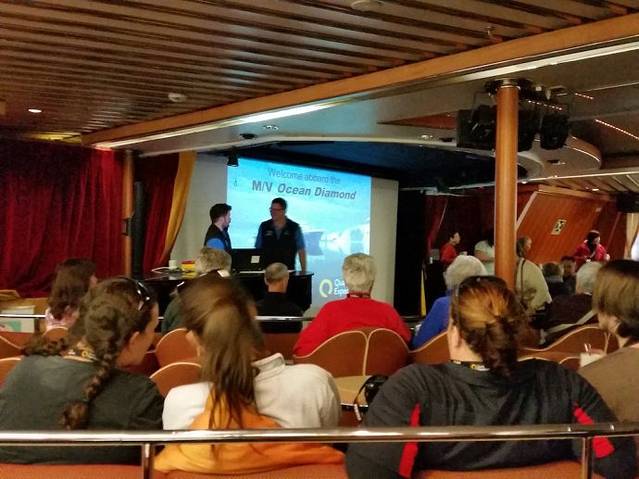 有人问我15天的游轮生活是否会感觉枯燥烦闷呀。没有,船公司每天的安排非常丰富多彩。除了每天下午由各学科专家举行科普讲座外,还组织了许多刺激、温馨的游客互动活动。