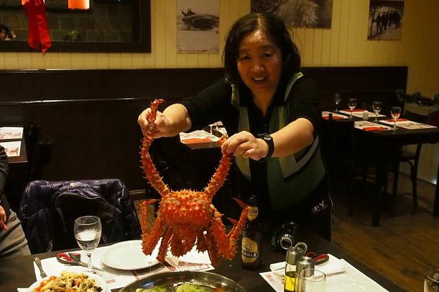 晚上我们结伴去品尝当地特产蜘蛛蟹。硕大的蟹重达2-3斤,两人一只吃得饱饱的。新鲜味美,肉质饱满,令我们回味无穷。