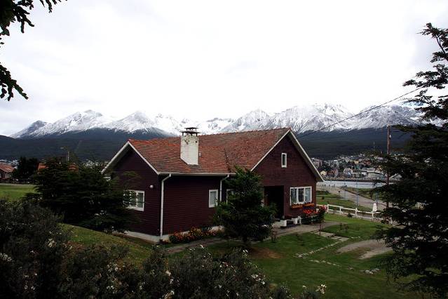 宾馆后面的山坡上有一个阿根廷的海军基地。后面的房子是一个展览馆。