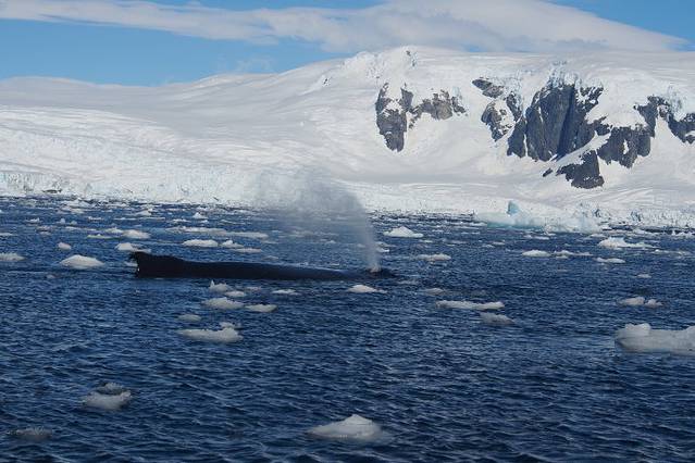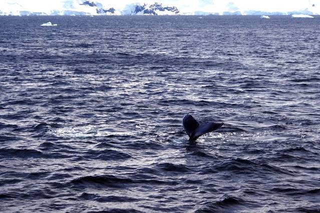 我们到达南极洲时正是鲸鱼迁徙而来的季节,观看鲸鱼是游客们乐此不疲的活动。每当游轮的广播室里播出遇到鲸鱼的消息时,大家蜂拥到前后甲板上,观看、拍摄。蓝鲸是鲸鱼中体型最大的,7-8只蓝鲸围着我们的游轮遨游,不断的喷出水柱并伴随着汽笛般的声音。