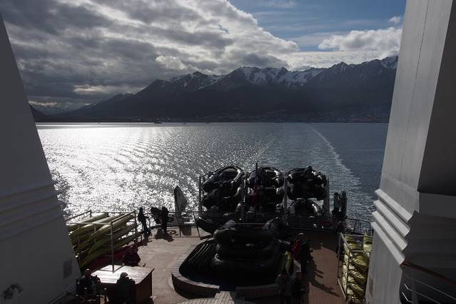 站在后甲板上遥望渐行渐远的乌斯怀亚