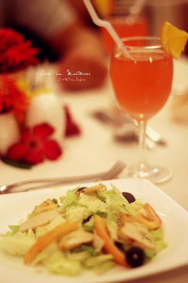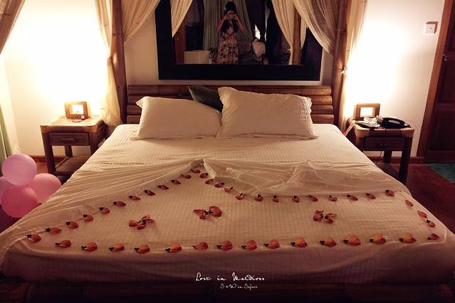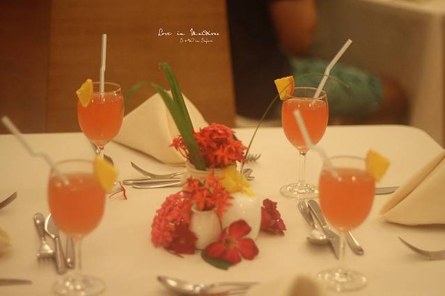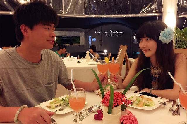 最后一天晚餐,被赠送了蜜月套餐和鲜花铺床。