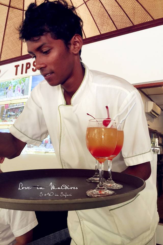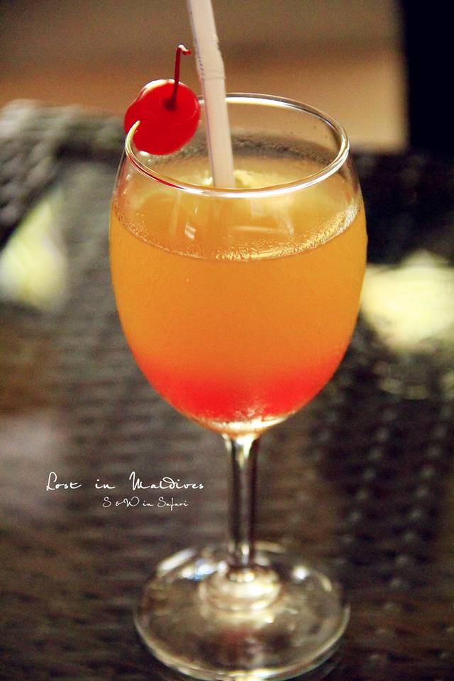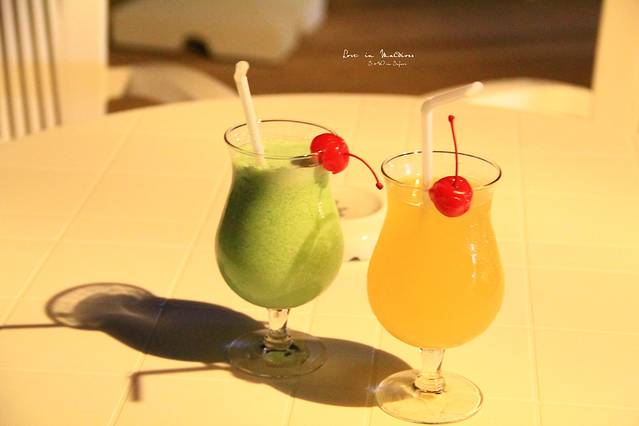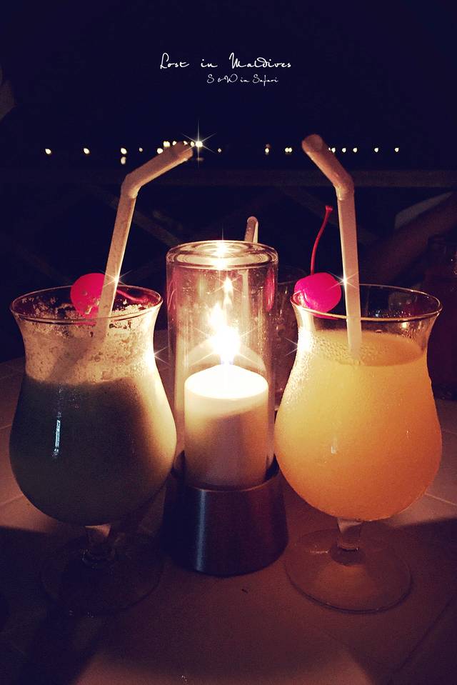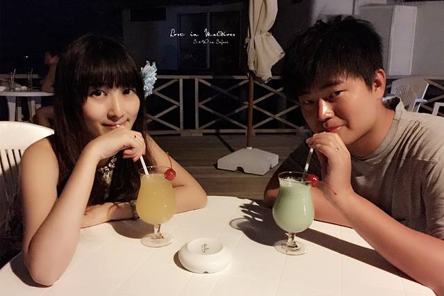 最后一天晚上,我们去露天酒吧点了两杯鸡尾酒。