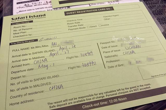 到了大厅,出示酒店预订单,然后中文导游沈晨就过来让我们填写入住单了。