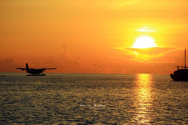 水飞开始咯~和马累机场岛上一架飞机几乎同时起飞。