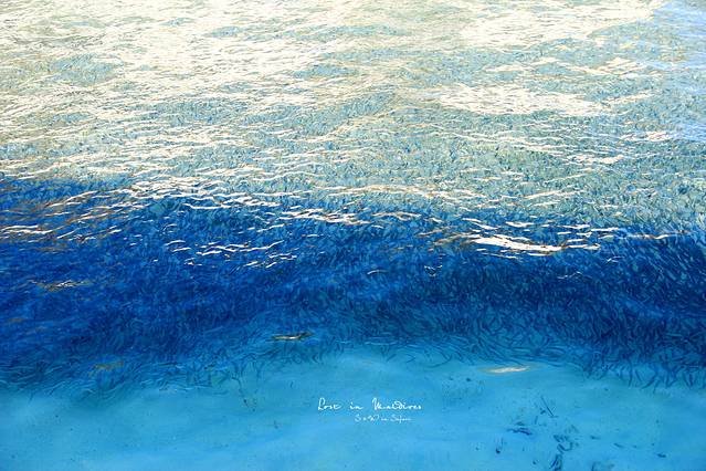 海水过了这个分界线瞬间就变得非常漂亮的蓝色了。