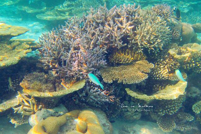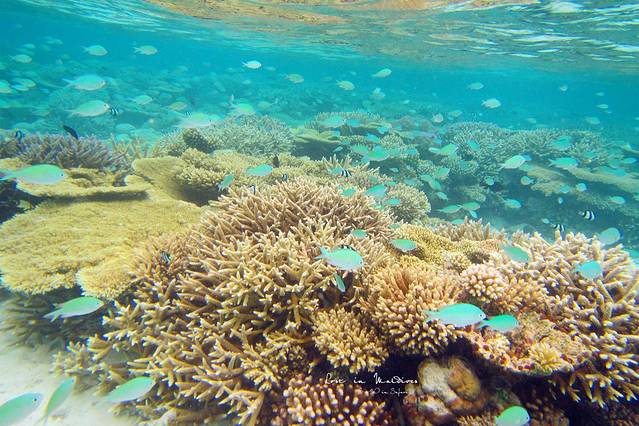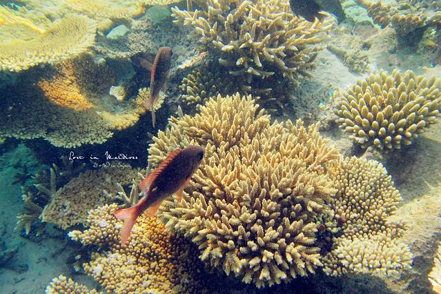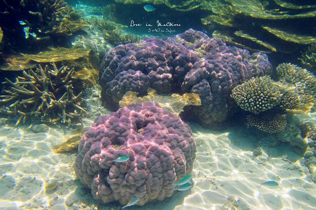 而在萨芙莉岛海滩7-8米处潜水,看到的都是五颜六色的活珊瑚。