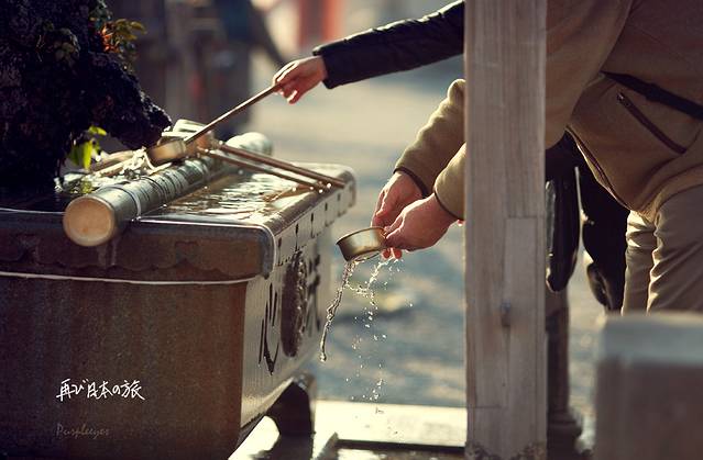 这里也有一个御手洗,不过离神社很远,在我看来应该是两用的,既给吃路边摊滴人们洗了手,又可以给拜神的人清洁。这不,这个御手洗使用率那是相当滴高呢。